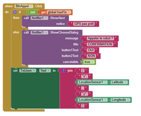 5) Dans BtnAppel.Click, tester si le GPS est prêt