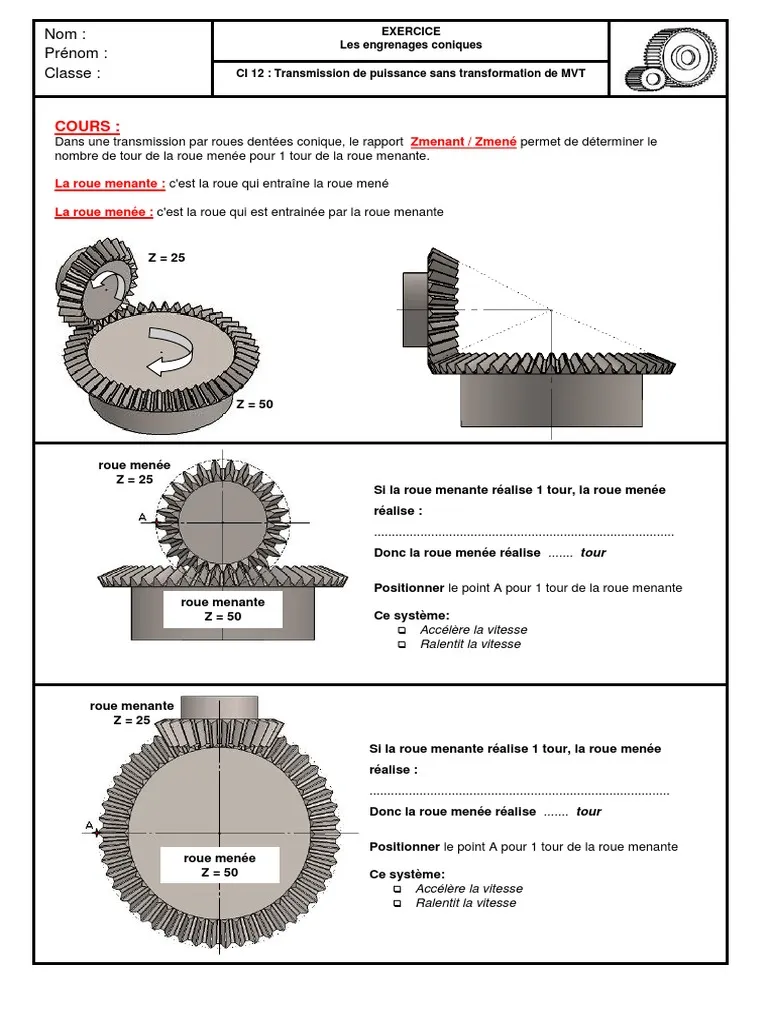 Engrenages à couple conique