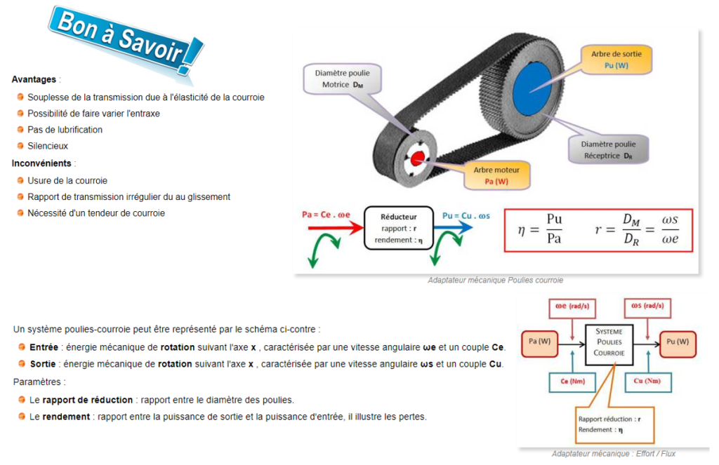 Définition: Le système à poulies-courroie permet de transmettre un mouvement de rotation à une distance plus ou moins importante.
