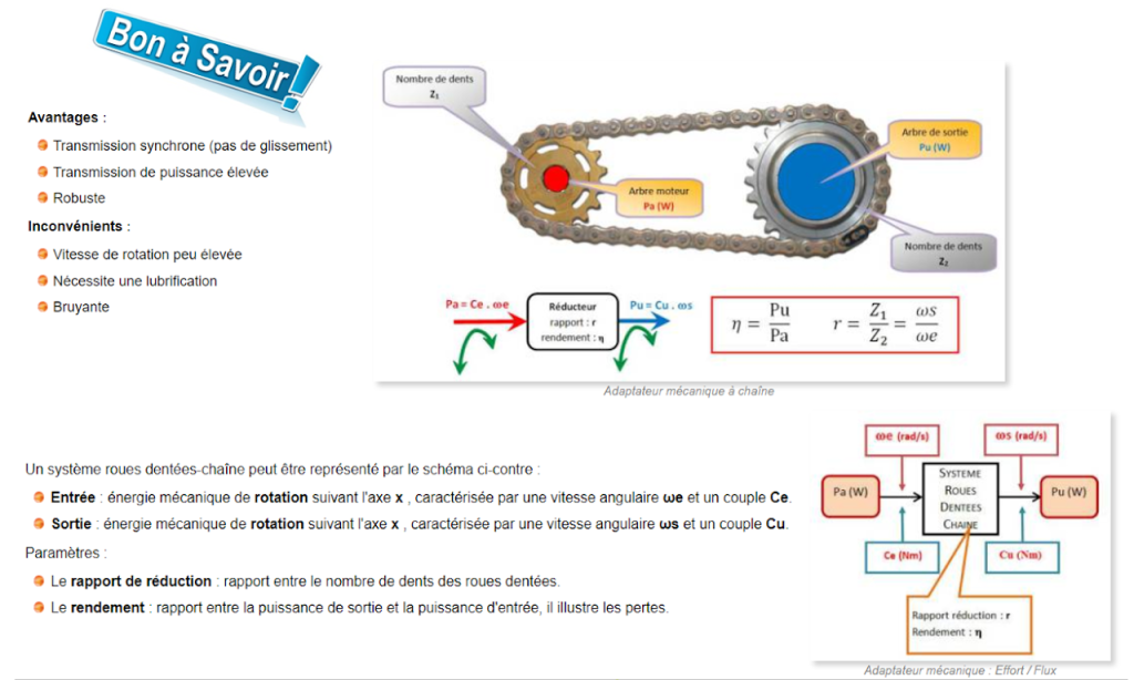 Définition: Le système à roues dentées-chaîne permet de transmettre un mouvement de rotation à une distance plus ou moins importante.