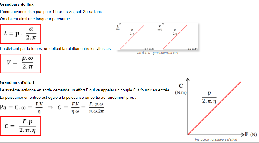 Il existe deux types de systèmes à vis et écrou. Dans certains systèmes, c’est la vis qui joue le rôle d’organe moteur. Dans ce cas, le mouvement de rotation de la vis se transforme en mouvement de translation pour l’écrou.