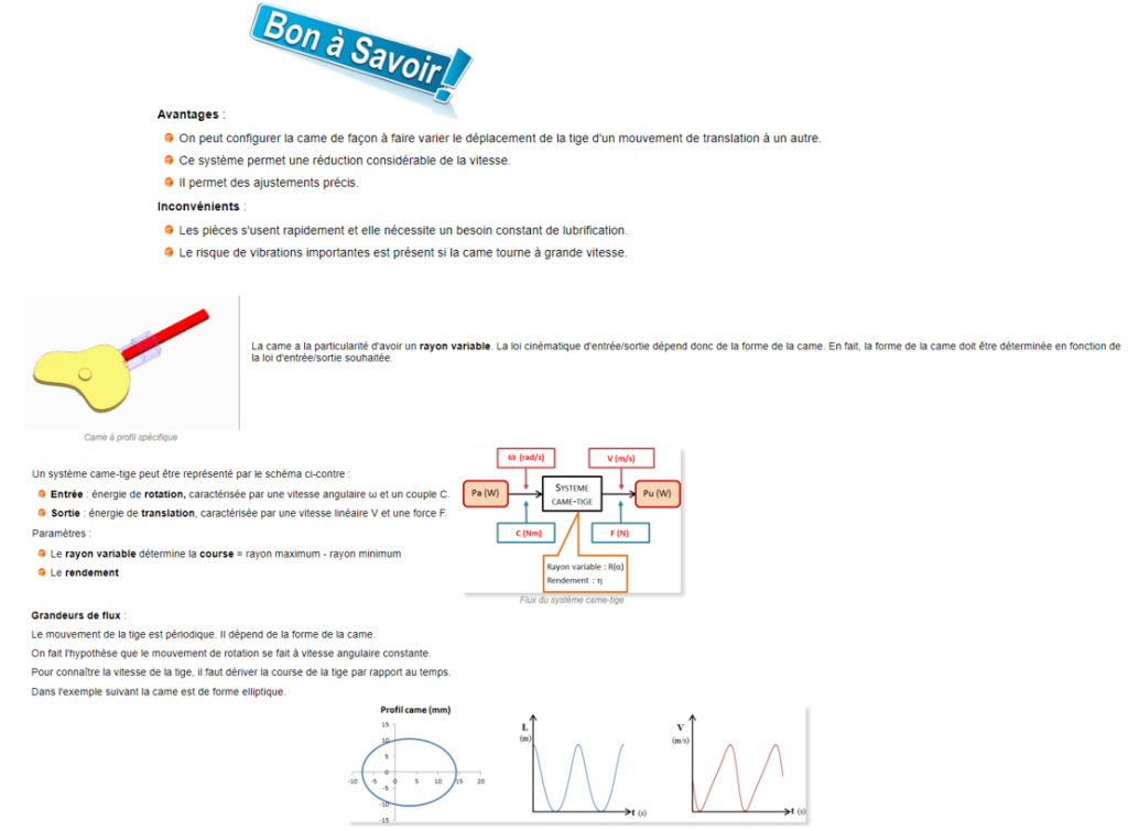 Définition: Le système de came et tige-poussoir (aussi appelée tige guidée) permet de transformer le mouvement de rotation de la came en un mouvement de translation alternatif (de va-et-vient) de la tige-poussoir.