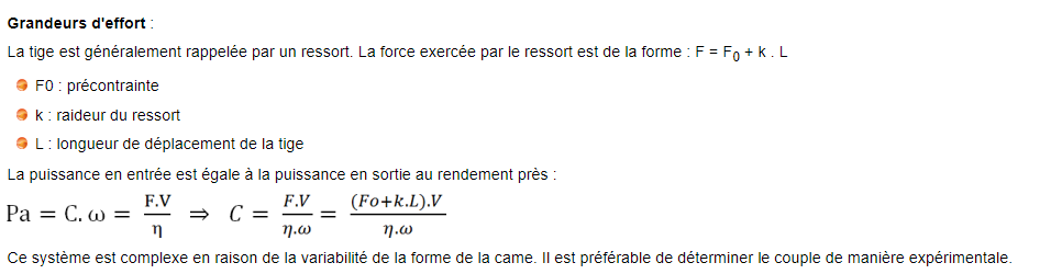 Le contact de la tige sur la came ne peut être maintenu que grâce à une force de rappel souvent obtenue à l’aide d’un ressort. Une traction sur la tige ne peut donc pas entraîner la came. Ce système est irréversible.