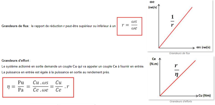 Le type de mouvement ou la lois entrée/sortie peut changer, soit d’un mouvement de rotation à un mouvement de translation ou inversement.