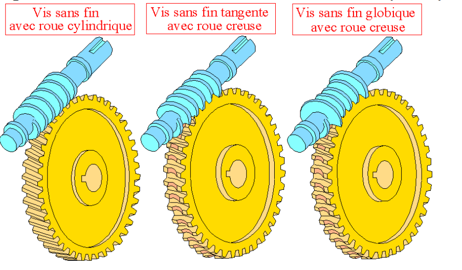 Le système à engrenages à roue et vis sans fin permet d’adapter la vitesse de rotation et/ou le couple , il permet également de changer l’axe de rotation le tout avec un minimum d’encombrement.
