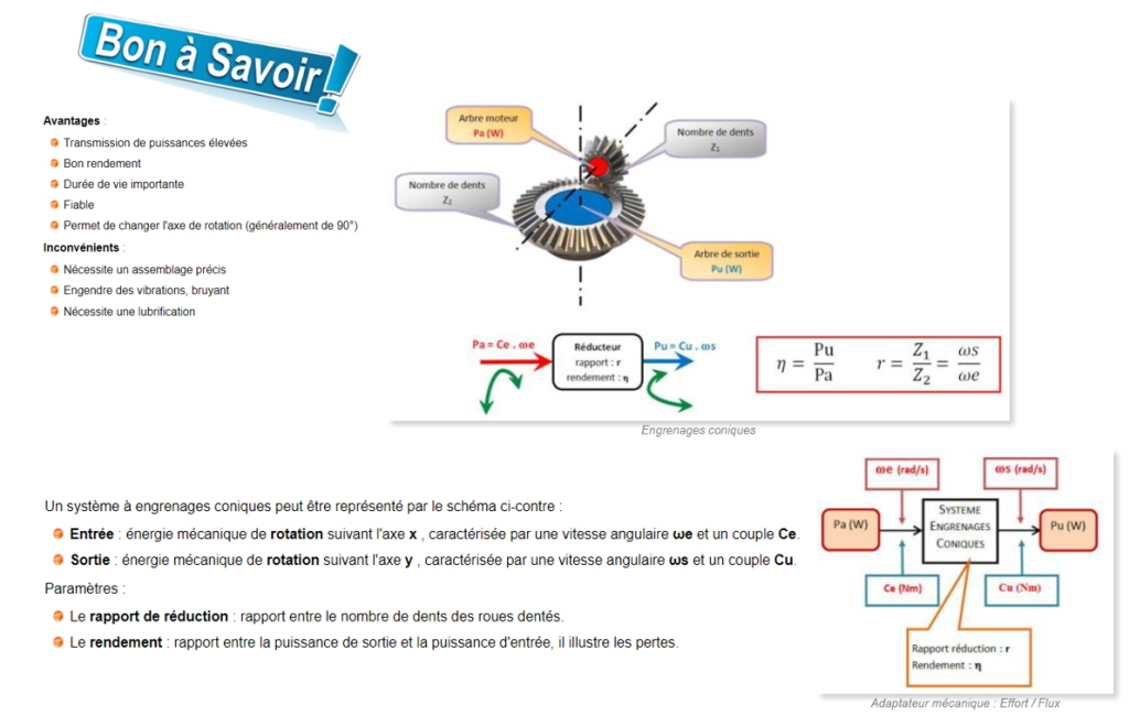 Définition : Le système à engrenages à arbres parallèles permet de transmettre un mouvement de rotation et d’adapter la vitesse et le couple.