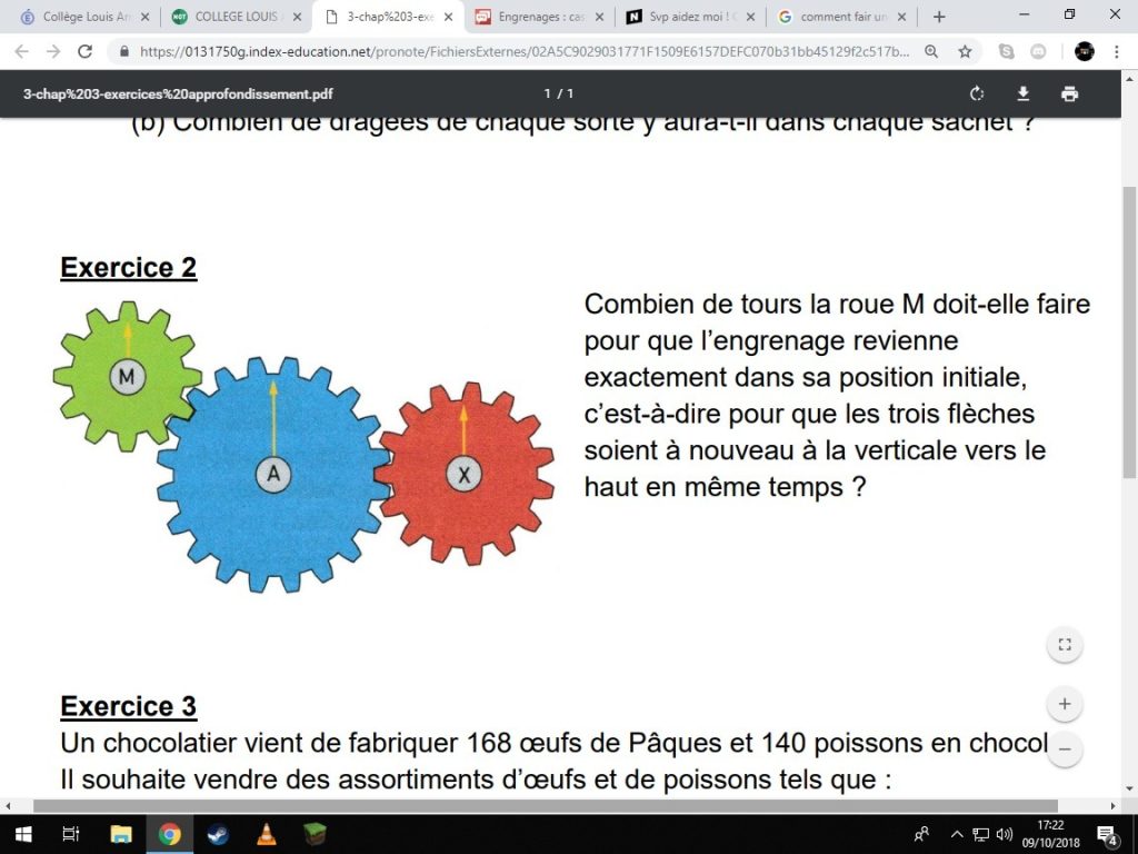 Système pignon / roue , les deux roues tournent en sens inverse