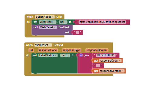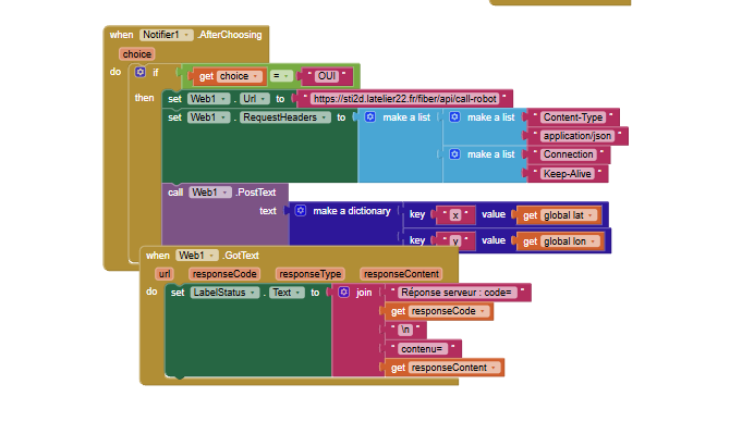 set Web1.Url to "https://sti2d.latelier22.fr/fiber/api/call-robot" set Web1.RequestHeaders to make a list